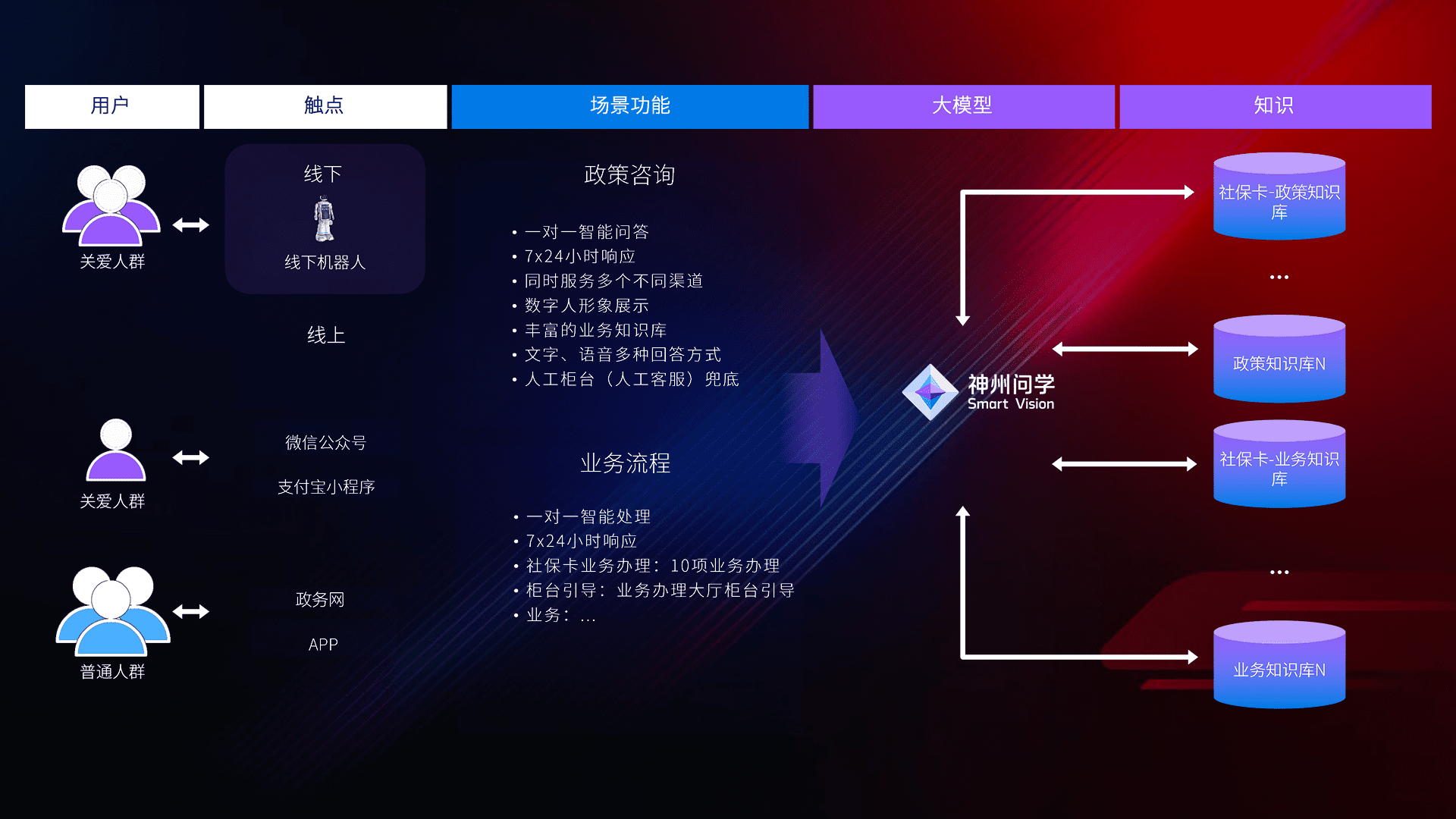 在服务大厅部署客服机器人,,,在线上应用和小程序配置客服数字人,,,724小时为群众解答常规问题,,,,客服机器人无法处理的,,,,转现场人工处理。。。